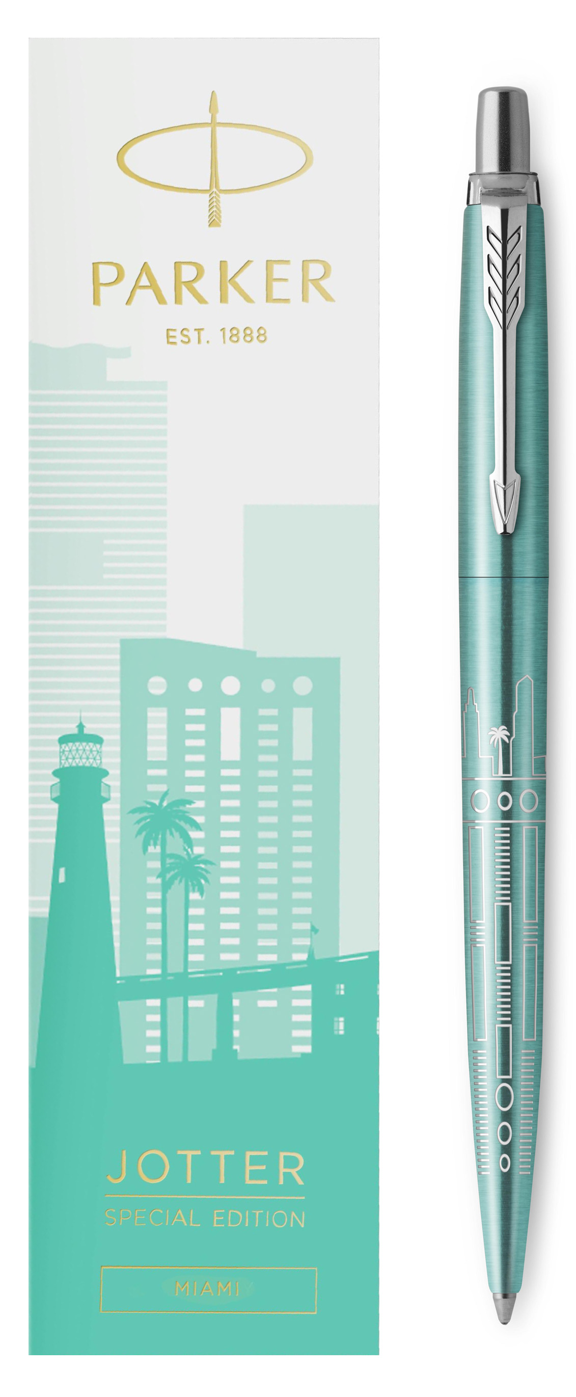 Ручка шариковая Parker Jotter Miami Turquoise CT от официального дилера Parker в Краснодаре. Вы можете дополнительно заказать гравировку, которая подчеркнет Вашу оригинальность и придаст памятность статусному подарку. Все ручки Паркер поставляются в фирменном футляре.
